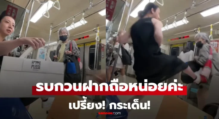 ดราม่ารถไฟฟ้าไทเป! คุณยายโบกถุงฟาดผู้โดยสาร แต่อีกฝ่ายลุกขึ้นเตะจนล้ม