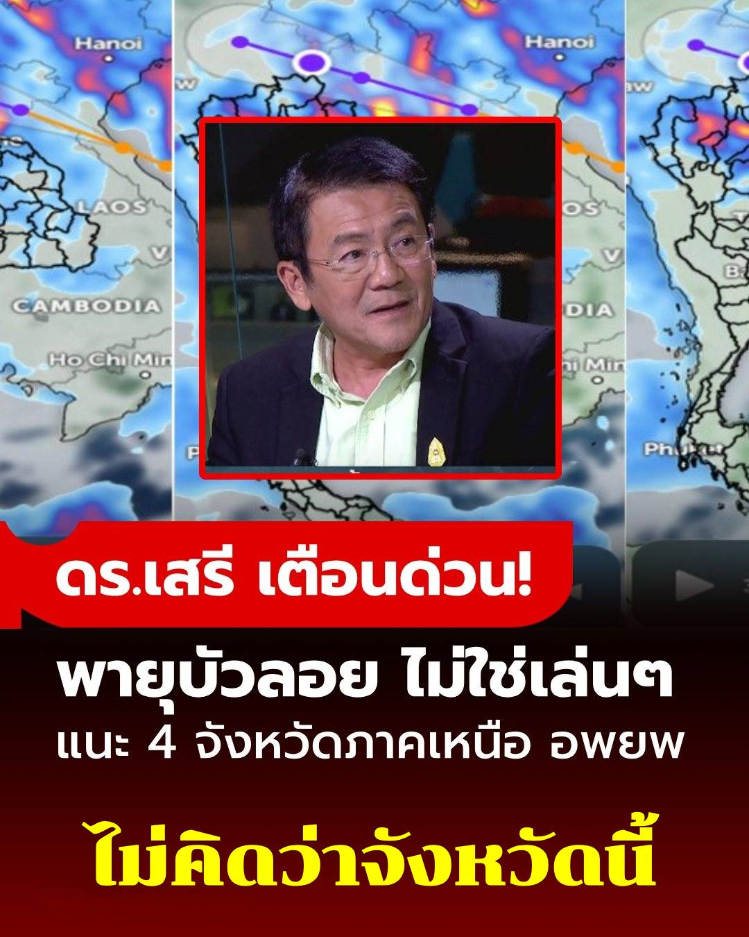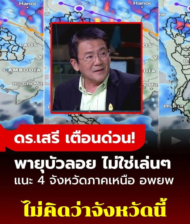 “ดร.เสรี” เตือน 4 จังหวัดภาคเหนือ อาจต้องอพยพ “พายุบัวลอย” อันตรายกว่าที่คิด