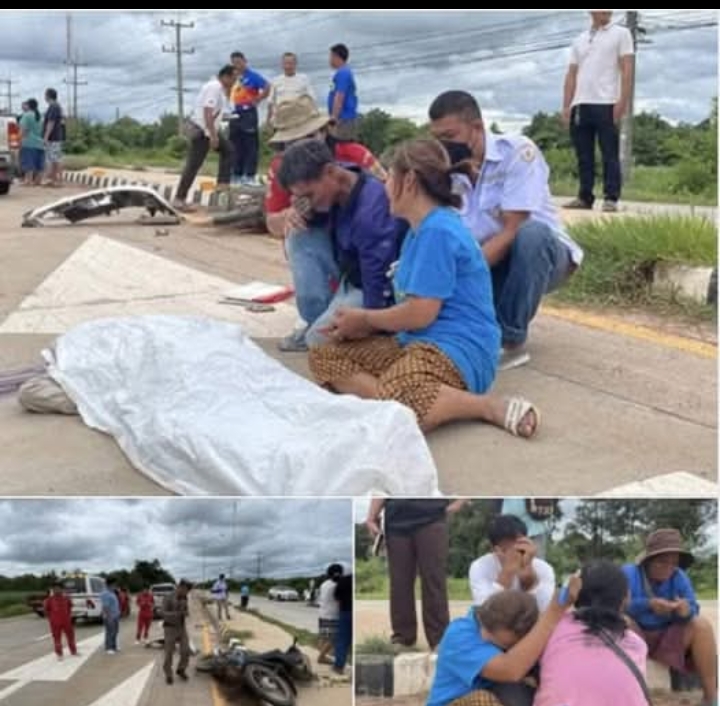 อำนาจเจริญ – อุบัติเหตุสุดสลดกลางวันแสก ๆ กระบะพุ่งชนท้ายจักรยานยนต์อย่างจัง ขณะคุณตาวัย 80 ปี กำลังจะเลี้ยวกลับรถหน้าโรงเรียนนายมวิทยาคาร ร่างกระเด็นศีรษะแตก เสียชีวิตคาที่