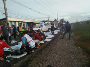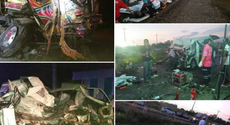 เปิดภาพความเสียหาย รถตู้ขนแรงงานชาวลาวไปต่อพาสปอร์ต พุ่งชนสิบล้อดับ 11 ศพ