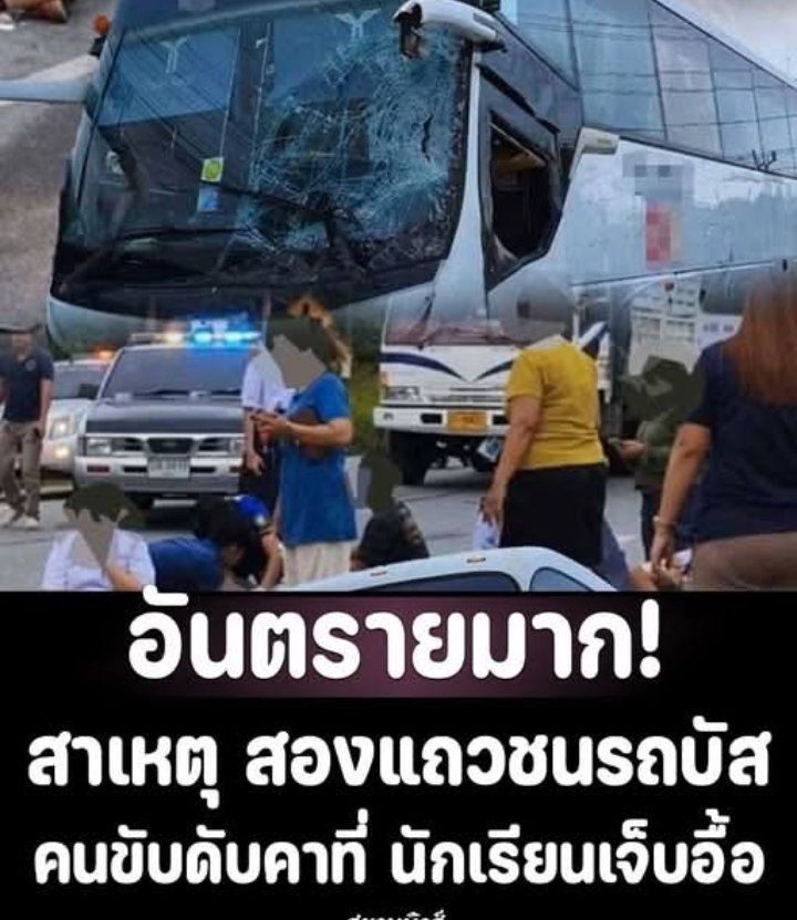 เปิดสาเหตุ สองแถวรับส่งนักเรียนเต็มคัน ชนรถบัส คนขับดับคาที่ นักเรียนเจ็บอื้อ