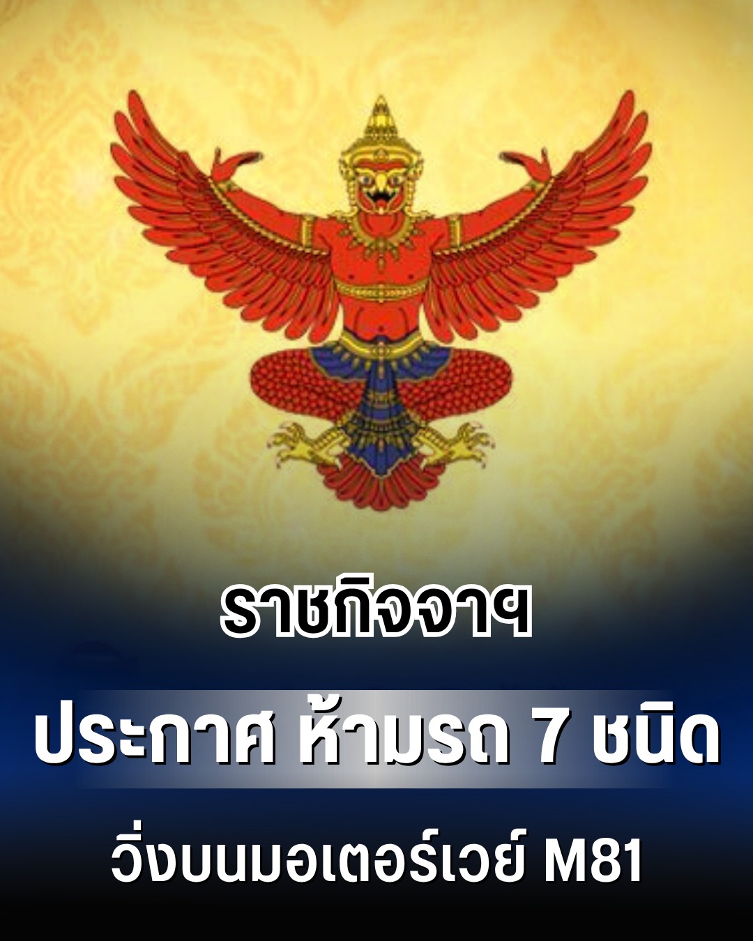 ราชกิจจาฯ ประกาศ ห้ามรถ 7 ชนิด วิ่งบนมอเตอร์เวย์ M81 บางใหญ่-กาญจนบุร