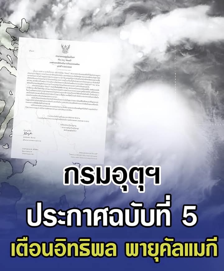 กรมอุตุฯ ประกาศฉบับที่ 5 เตือนอิทธิพล พายุคัลแมกี