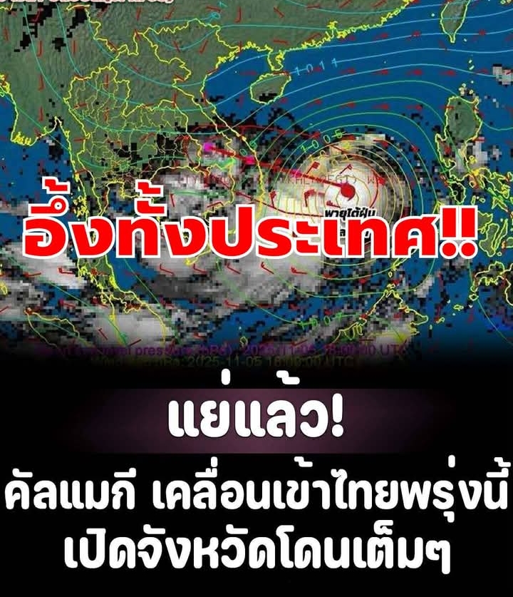 พายุ คัลแมกี เคลื่อนเข้าไทยพรุ่งนี้ เปิดจังหวัดโดนเต็มๆ ฝนถล่มหนัก น้ำท่วมฉับพลัน น้ำป่าไหลหลาก