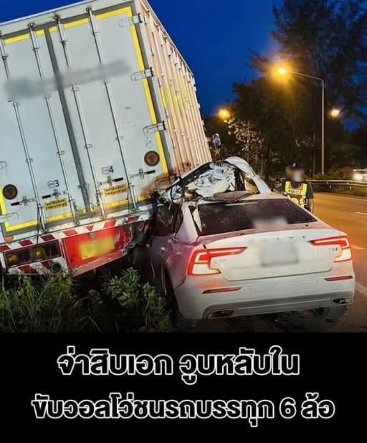 จ่าสิบเอก ขับวอลโว่วูบหลับใน เสียหลักพุ่งชนรถบรรทุก 6 ล้อจอดข้างทาง