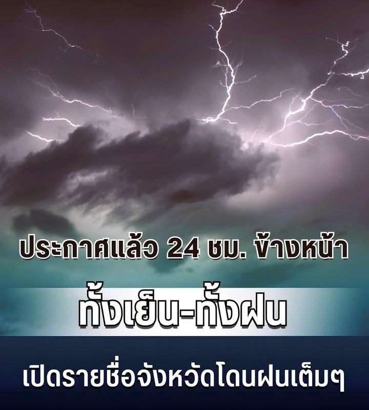 กรมอุตุฯ ประกาศแล้ว 24 ชม. ข้างหน้า ทั้งเย็น-ทั้งฝน เปิดรายชื่อจังหวัดโดนฝนเต็มๆ