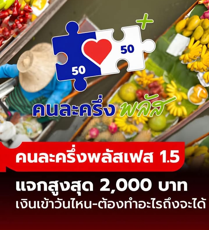 หลังจากที่รัฐบาลคิกออฟโครงการคนละครึ่ง และเริ่มใช้สิทธิเมื่อวันที่ 29 ต.ค. 68 ที่ผ่านมา ล่าสุด กระทรวงการคลัง ได้ต่อยอดเพิ่มเติมด้วย “โครงการคนละครึ่งพลัสเฟส 1.5” โดยมีเป้าหมายเพื่อพัฒนาร้านค้าที่เข้าร่วมโครงการคนละครึ่งพลัส ด้วยการ Reskill หรือ Upskill เพิ่มทักษะให้กับร้านค้าในโครงการขายของออนไลน์ รวมถึงเพิ่มทักษะด้าน AI ที่จะช่วยเพิ่มยอดขาย