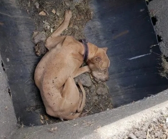 A dog had been found in a storm drain, and initially appeared lifeless. However, hope revived as the drain’s cover was lifted and the dog slowly raised his head.