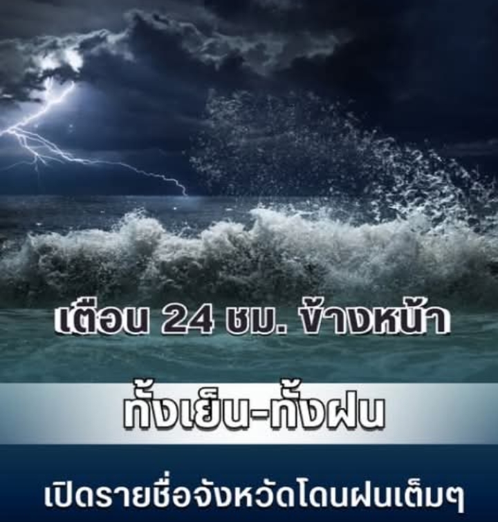 กรมอุตุฯ ประกาศแล้ว 24 ชม. ข้างหน้า ทั้งเย็น-ทั้งฝน เปิดรายชื่อจังหวัดโดนฝนเต็มๆ
