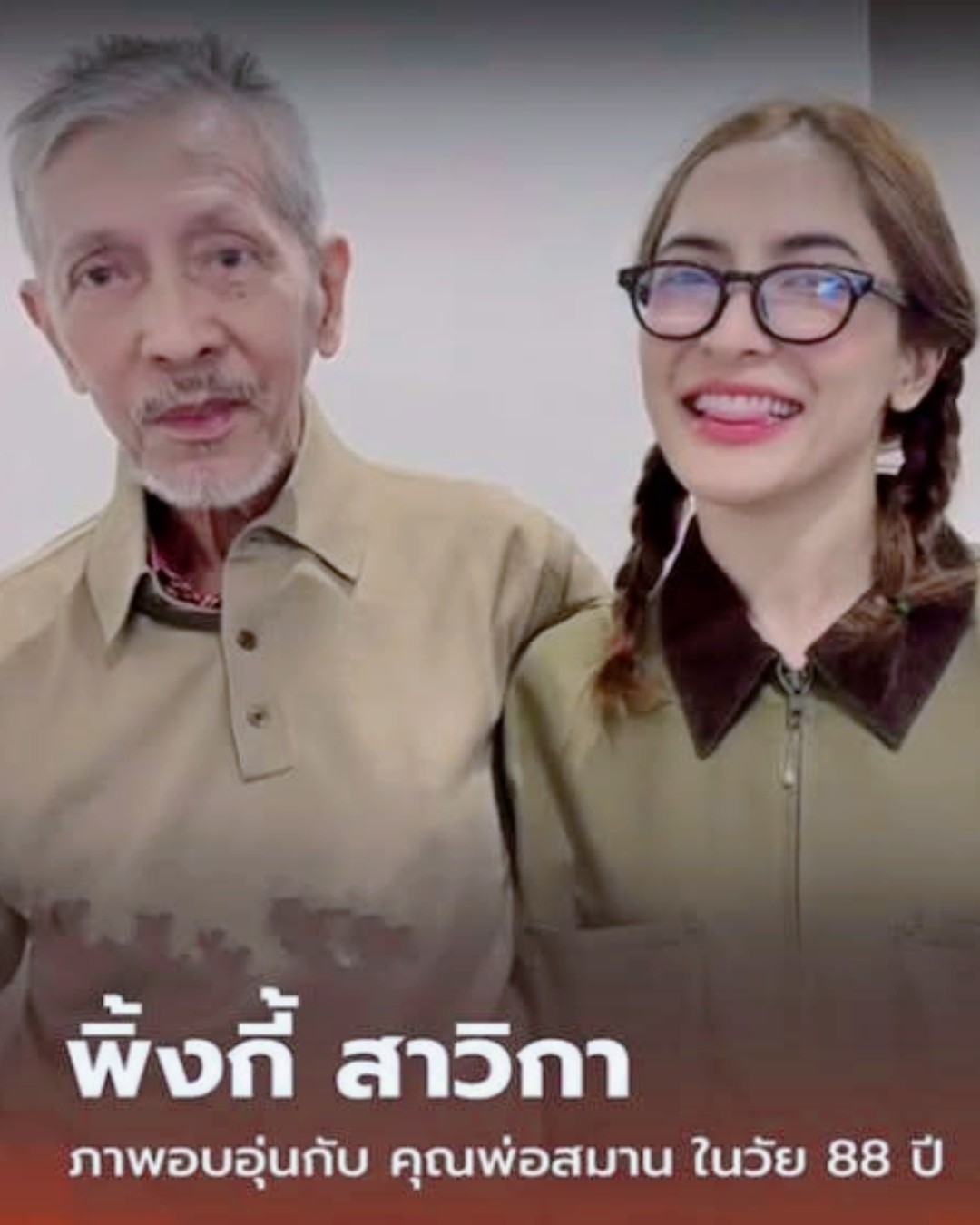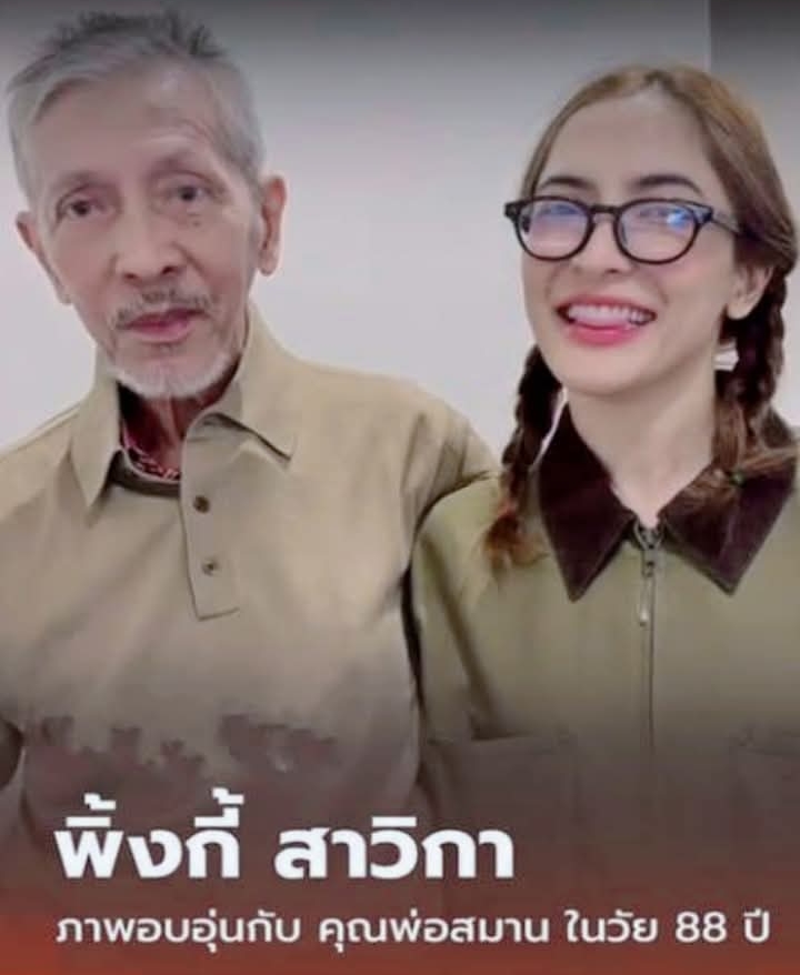 นานๆ ได้เห็น “พิ้งกี้ สาวิกา” ภาพอบอุ่นกับ “คุณพ่อสมาน” ในวัย 88 ปี พร้อมหน้าหลาน