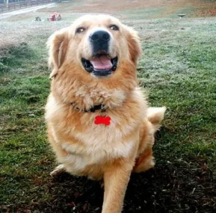 Tricycle, a three-legged golden retriever, resides at Horse Creek Stable Rescue Sanctuary in Mineral Bluff, Georgia.