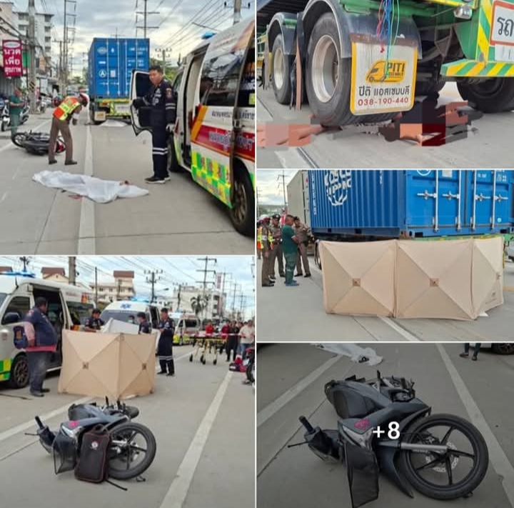 อุบัติเหตุน่าสลดรายนี้เกิดขึ้นเมื่อเวลา09.00นวันนี้(17พ.ย.68)ร.ต.อ.บุญหลาย อินเอี่ยม ร้อยเวรสถานีตำรวจภูธรแหลมฉบังรับแจ้งมีอุบัติเหตุรถจักรยานยนต์กับรถบรรทุกเทเลอร์18ล้อบริเวณถนนชากยายจีนหน้าโรงน้ำแข็งวรกิจม.8ต.ทุ่งสุขลาอ.ศรีราชา จ.ชลบุรีมีผู้บาดเจ็บและเสียชีวิต หลังรับแจ้งรุดไปตรวจสอบที่เกิดเหตุพร้อมด้วยอาสาสมัครหน่วยกู้ภัยสว่างประทีปศรีราชา ในที่เกิดเหตุพบรถจักรยานยนต์ฮอนด้าเวฟเทาดำหมายเลขทะเบียน5ขช-5302กทมล้มคว่ำเสียหายเล็กน้อยห่างไป5เมตรพบร่างผู้เสียชีวิตเป็นชายอายุประมาณ15ปีสัญชาติเมียนมาถูกล้อรถเทรเลอร์ทับร่างใว้ และเด็กหญิงอายุ9ขวบสัญชาติเดียวกันเป็นนักเรียนชั้นประถมศึกษาปีที่3ศูนย์การเรียนรู้อาเซียนไทย-เมียนมา วัดบุญญาราม(วัดต้นมะม่วง) สอบสวนนายวันรบ เจริญยิ่ง อายุ57ปีคนขับรถเทรเลอร์เล่าว่า ก่อเกิดเหตุตนขับรถมาจากอ่าวอุดมมุ่งหน้าออกสาย7เมื่อมาถึงหน้าโรงน้ำแข็งเห็นรถจักรยานยนต์ตีคู่มาด้านซ้ายล้มลงเห็นคนกระเด็นเข้าไปจึงรีบเบรคและจอดรถลงมาดูก็พบว่าล้อทับร่างคนเสียชีวิตแล้ว สำหรับเด็กนักเรียนหญิงชาวเมียนมาที่ซ้อนท้ายพี่ชายมาจนเกิดอุบัติเหตุเสียชีวิตอย่างน่าอนาถนั้นเนื่องจากปกติคนเป็นพ่อจะเป็นคนขับรถไปส่งลูกสาวที่โรงเรียนทุกวัน แต่วันนี้ได้ให้คนเป็นพี่ชายขับมาส่งแทนซึ่งพี่ชายเพิ่งเดินทางเข้ามาประเทศไทยไม่กี่วันยังไม่ชินเส้นทางและคุ้นกับพื้นที่ก่อนเกิดเหตุขณะขับมาส่งน้องสาวไปรร.ได้มีคนงานโรงน้ำแข็งวรกิจซึ่งเป็นชาวลาวข้ามถนนมาซื้อของแต่ถูกรถจักรยานยนต์ของหนุ่มเมียนมาพุ่งชนจนได้รับบาดเจ็บสาหัสทำให้รถจักรยายนต์เสียหลักล้มลงจนเป็นเหตุให้สองพี่น้องชาวเมียนเกิดอุบัติเหตุสลดดังกล่าวเบื้องต้นเจ้าหน้าที่บันทึกภาพที่เกิดเหตุและมอบร่างผู้เสียชีวิตนำส่งโรงพยาบาลแหลมฉบังและนำคนขับรถเทรเลอร์ไปสอบปากคำเพิ่มเติมต่อไป