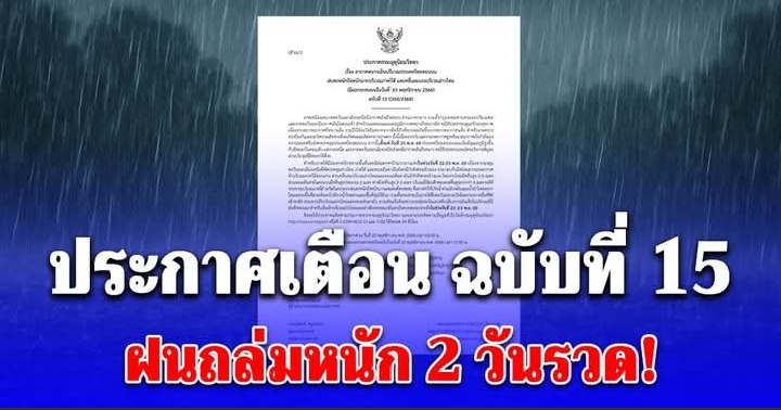 อ่วม! กรมอุตุ ประกาศเตือน ฉบับที่ 15 ฝนถล่มหนัก 2 วันรวด! เปิดพื้นที่สีแดง 5 จังหวัดโดนเต็มๆ
