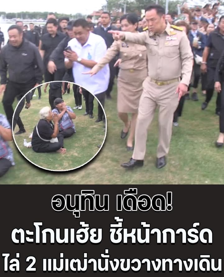 อนุทิน เดือด! ตะโกนเฮ้ย ชี้หน้าการ์ด หลังพยายามไล่ 2 แม่เฒ่านั่งขวางทางเดินนายกฯ