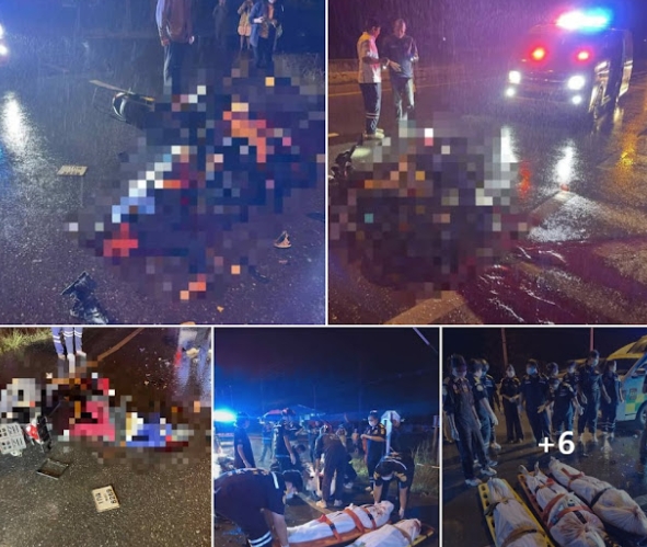สลดกลางสายฝน! 3 ชีวิตพ่อแม่ลูก กลับไม่ถึงบ้าน จยย.พุ่งเสยท้ายรถ 6 ล้อ เสียชีวิตยกครัว