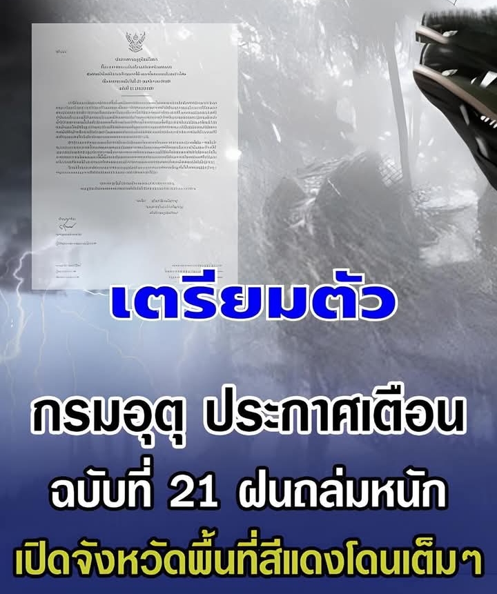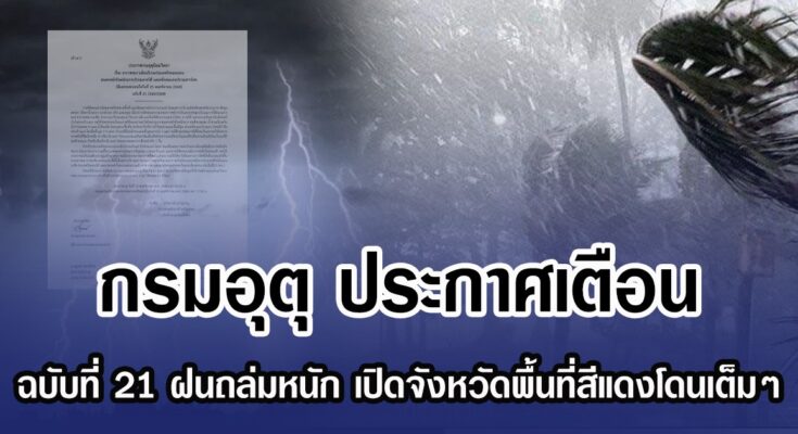 กรมอุตุ ประกาศเตือน ฉบับที่ 21 ฝนถล่มหนัก เปิดจังหวัดพื้นที่สีแดงโดนเต็มๆ