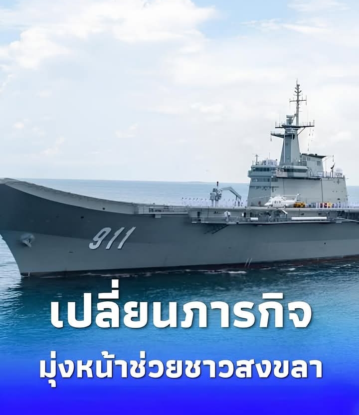 ‘เรือหลวงจักรีนฤเบศร’ เปลี่ยนภารกิจสู่ ‘บก.ลอยน้ำ’ มุ่งหน้าช่วยชาวสงขลา