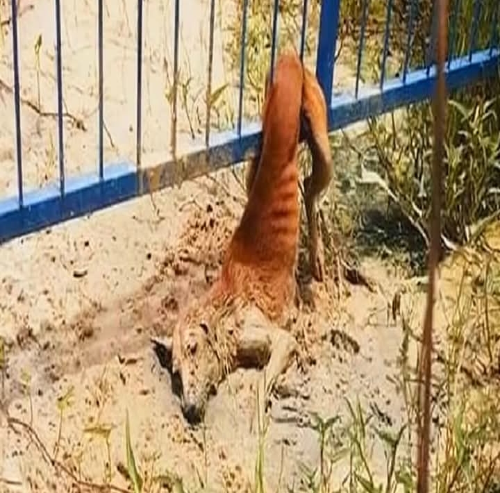 Gently, they removed her from the fence and used an umbrella to shield her from the harsh sun, providing her some comfort after her ordeal.