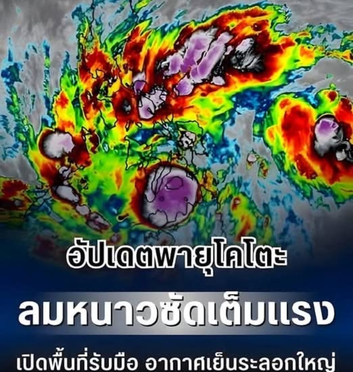 เมื่อเวลา 05.00 น. วันที่ 27 พฤศจิกายน 2568 เว็บไซต์ กรมอุตุนิยมวิทยา เผยเเพร่ ประกาศกรมอุตุนิยมวิทยา เรื่อง พายุ โคโตะ และอากาศหนาวเย็นบริเวณประเทศไทยตอนบน ฉบับที่ 2 (364/2568) (มีผลกระทบตั้งแต่วันที่ 27-30 พฤศจิกายน 2568)