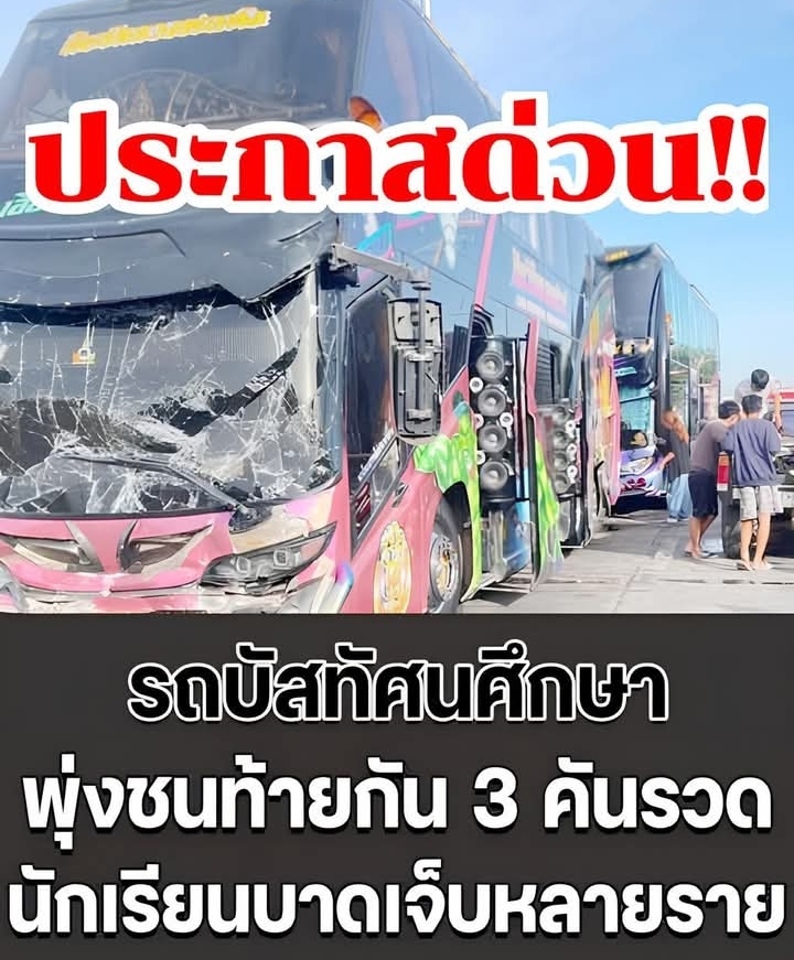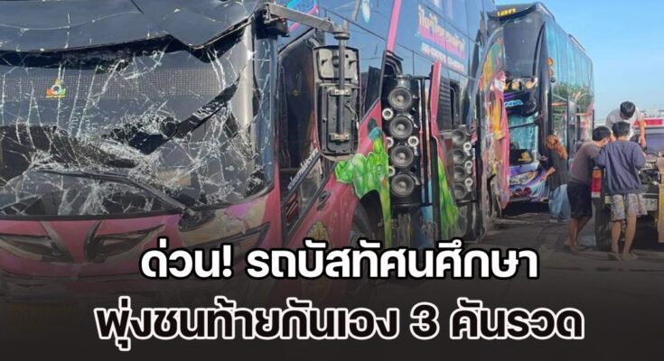 ด่วน! รถบัสทัศนศึกษา พุ่งชนท้ายกัน 3 คันรวด นักเรียนบาดเจ็บหลายราย