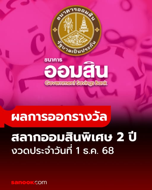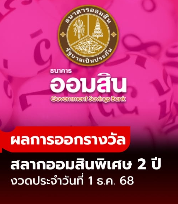 ตรวจสลากออมสิน 1/12/68 สลากออมสินพิเศษ 2 ปี งวด 1 ธันวาคม 2568