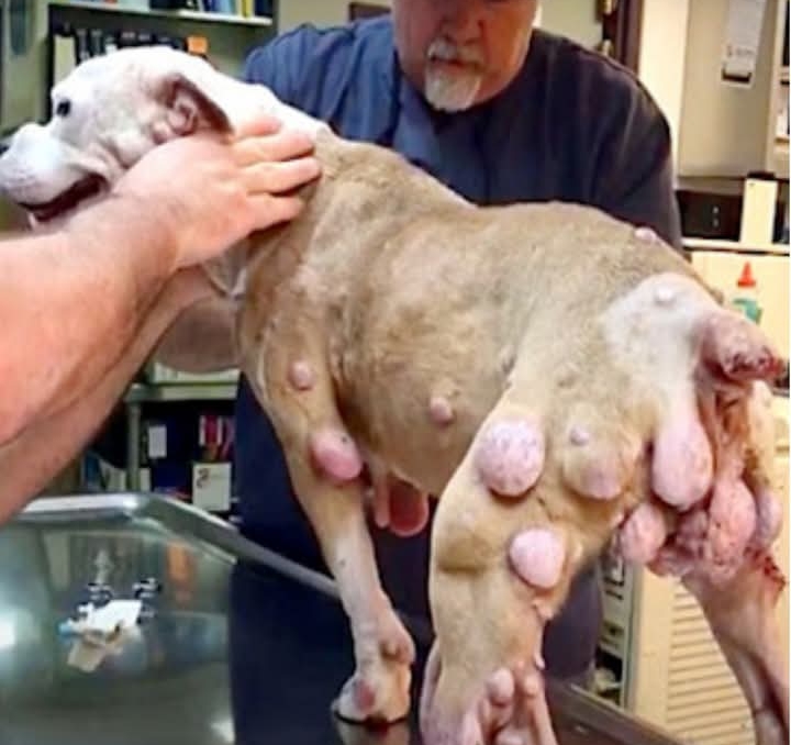 After being rescued and taken to the veterinarian, it was discovered that the dog had mast cell cancer and required surgery.