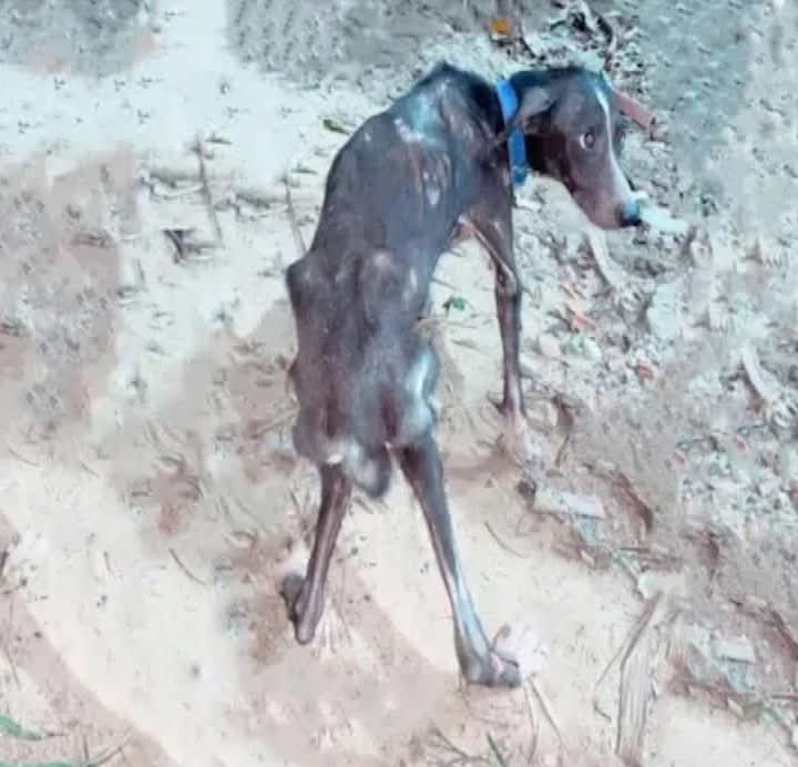 He was extremely underweight, his bones jutting out prominently, and had been tied to a tree, limiting his movement and leaving him susceptible to injury.