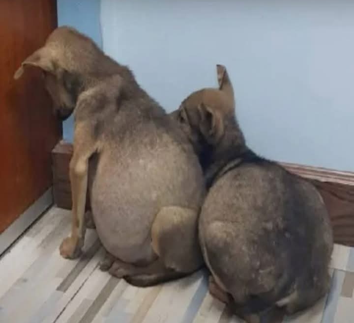 This heartwarming tale is about two young puppies who were discovered with swollen bellies, wandering the street in a state of distress.