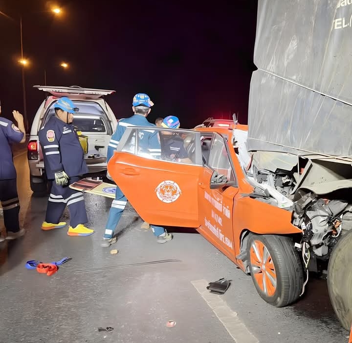 แท็กซี่พุ่งชนท้ายสิบล้อกลางสะพานปทุมธานี 2 ดับ 3 เจ็บ 1