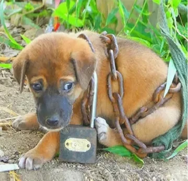 In a secluded area rarely visited by people, a small dog was found abandoned and chained, leaving behind an unresolved mystery regarding who had mistreated it.