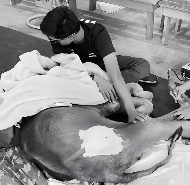 ทีมสัตวแพทย์ดูแลรักษาอย่างเข้มข้น ทั้งการให้สารน้ำทางหลอดเลือดดำทุกวัน การให้วิตามิน ยาบำรุงตับ ยาลดการอักเสบของระบบทางเดินอาหาร แคลเซียมผสมวิตามินรวม รวมถึงการดูแลแผลและแผลกดทับด้วยการทายาและเลเซอร์บำบัด พร้อมนวดและยืดเหยียดขาหน้าอย่างสม่ำเสมอ เจ้าหน้าที่ช่วยพยุงตัวและพลิกตัวทุก 2 ชั่วโมง เพื่อป้องกันแผลกดทับ และเมื่อวันที่ 12 มกราคม ได้มีการเจาะเลือดส่งตรวจทางห้องปฏิบัติการเพิ่มเติม