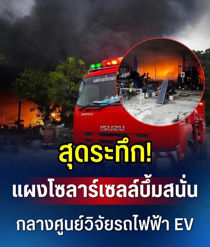 สุดระทึก! แผงโซลาร์เซลล์บึ้มสนั่น กลางศูนย์วิจัยรถไฟฟ้า EV ย่านกำแพงแสน