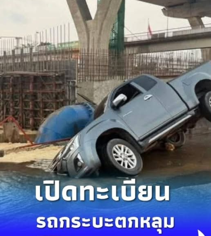 เปิดทะเบียนรถกระบะ ขับมาดีๆอยู่ๆตกหลุมถนนพระราม 2 ที่ทรุดตัว