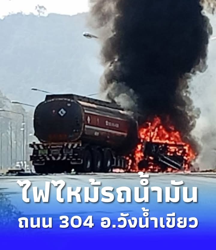 รายละเอียดระบุว่า… มีรายงานล่าสุด! เกิดเหตุไฟไหม้รถบรรทุกนํ้ามัน ที่บริเวณโค้งวรรณศาสตร์ ถนน 304 บ้านห้วยเค็ม อ.วังน้ำเขียว จ.นครราชสีมา