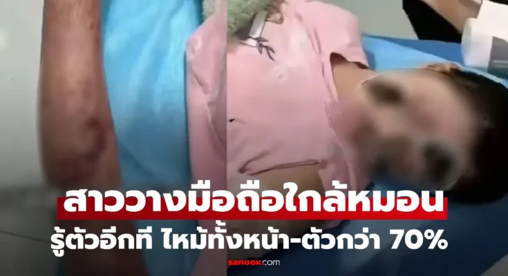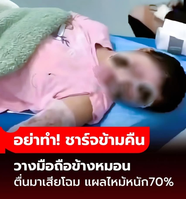 อุทาหรณ์ช็อก! สาวชาร์จแบตโทรศัพท์ข้ามคืน วางข้างหมอน ตื่นมาเสียโฉม แผลไหม้กว่า 70%