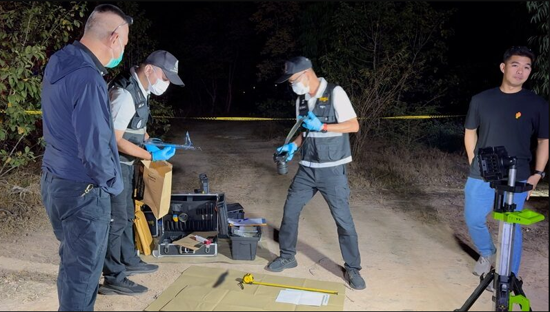 ที่เกิดเหตุพบรถเก๋งไฟฟ้า สีขาว ทะเบียนจังหวัดขอนแก่น ที่เบาะนั่งคนขับพบร่างผู้เสียชีวิตเป็นชาย มีบาดแผลฉกรรจ์บริเวณลำคอ ใกล้กันมีมีดปลายแหลมตกอยู่ข้างเบาะ ทราบต่อมา ผู้เสียชีวิต อายุ 40 ปี เป็นอัยการคุ้มครองสิทธิ์ ตรวจสอบภายในรถพบกระดาษเขียนข้อความ พร้อมเบอร์โทรศัพท์ของครอบครัว