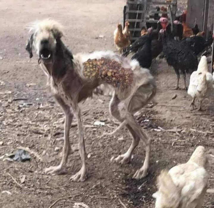 A stray dog spent years wandering around a chemical factory, battling hunger and neglect. Factory workers observed her desperate search for food, resorting to eating anything she could find, including chicken feces, to keep herself alive.
