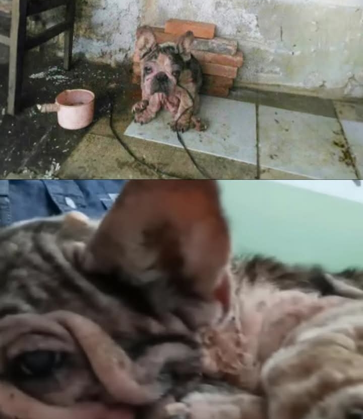 His skin bore the marks of relentless infections, leaving him with wounds that bled from constant scratching. Yet, despite the pain and loneliness, his eyes held a silent plea for affection—something he had never known.