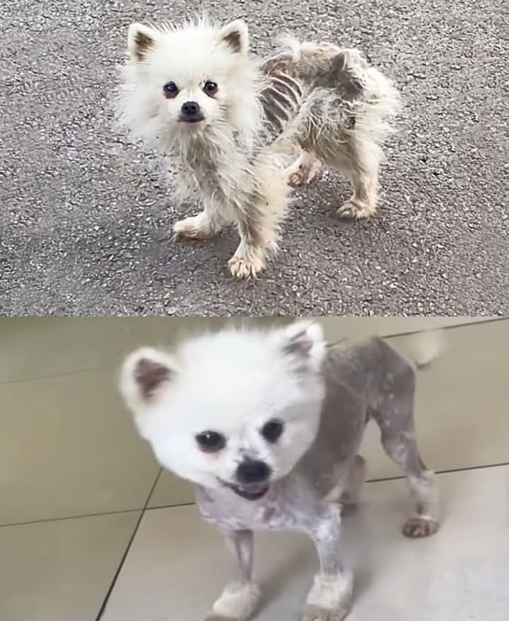 The little dog, a Pomeranian, once cherished as a pet, now struggled to survive in the harsh streets. Hunger had left it weak, yet it remained wary of people, unsure whether to trust or flee.