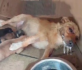 The morning after, the vet conducted a thorough check-up and gave Luna a clean bill of health. Luna’s spirits lifted when she saw her puppies, who were still too young for adoption.