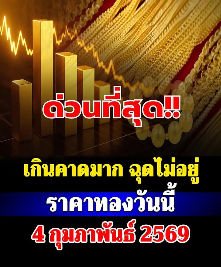 4 ก.พ.69 ราคาทองวันนี้ 4 กุมภาพันธ์ 2569 โดย สมาคมค้าทองคำ ประกาศราคาทองครั้งที่ 1 (เปิดตลาด) เมื่อเวลา 09.08 น. ปรับตัวขึ้นพรวดเดียว 2,100 บาท สู่บริเวณ 75,700 บาท เมื่อเทียบกับประกาศราคาซื้อขายครั้งสุดท้ายของเมื่อวาน(อังคาร) ที่ระหว่างวันมีการประกาศราคาทองคำทั้งหมดมากถึง 63 ครั้ง รวมราคาปรับตัวเพิ่มขึ้นแรง 2,450 บาท
