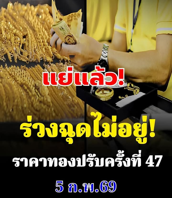 ราคาทองคำในประเทศวันนี้ (พฤหัสบดีที่ 5 กุมภาพันธ์ 2569) ปรับตัวร่วงแรงอีกครั้ง โดยสมาคมค้าทองคำประกาศราคาครั้งที่ 47 เมื่อเวลา 12.14 น. ลดลงถึง 2,300 บาท ส่งผลให้ราคาทองแท่งรับซื้อหลุดลงมาอยู่ในระดับ 73,400 บาทต่อทองคำ