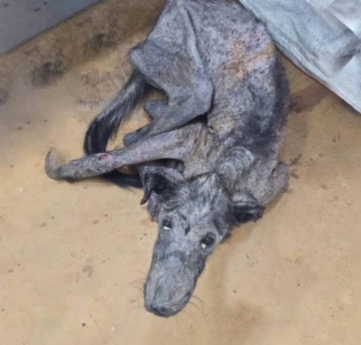 When Kenzo was discovered, he was in a dire state, struggling to stand. His body was a testament to the neglect he had suffered, with wounds and tangled fur marking his ordeal.