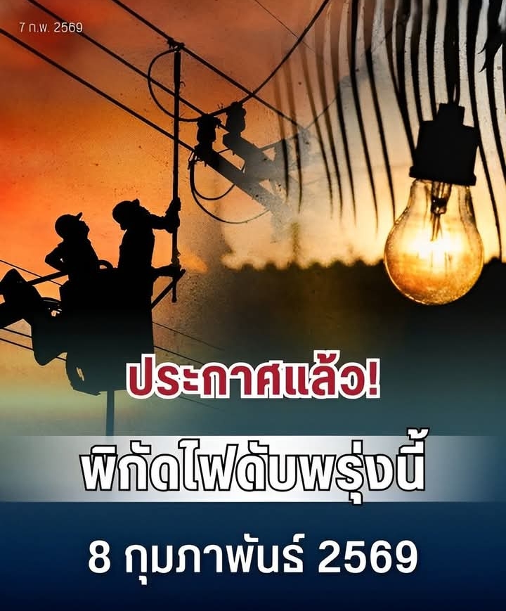 ประกาศเเล้ว! เปิดพิกัดไฟดับพรุ่งนี้ 8 กุมภาพันธ์ 2569 กทม.-นนทบุรี